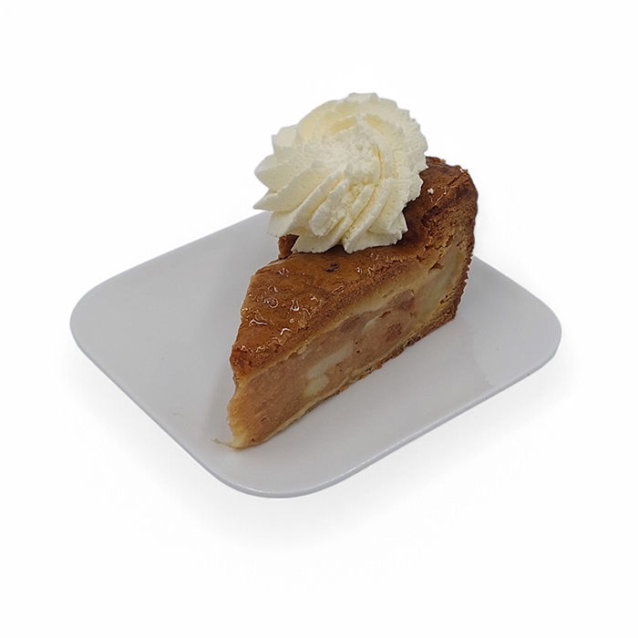 Roomboterdeeg gevuld met stukjes appel, rozijnen en kaneel en afgewerkt met slagroom