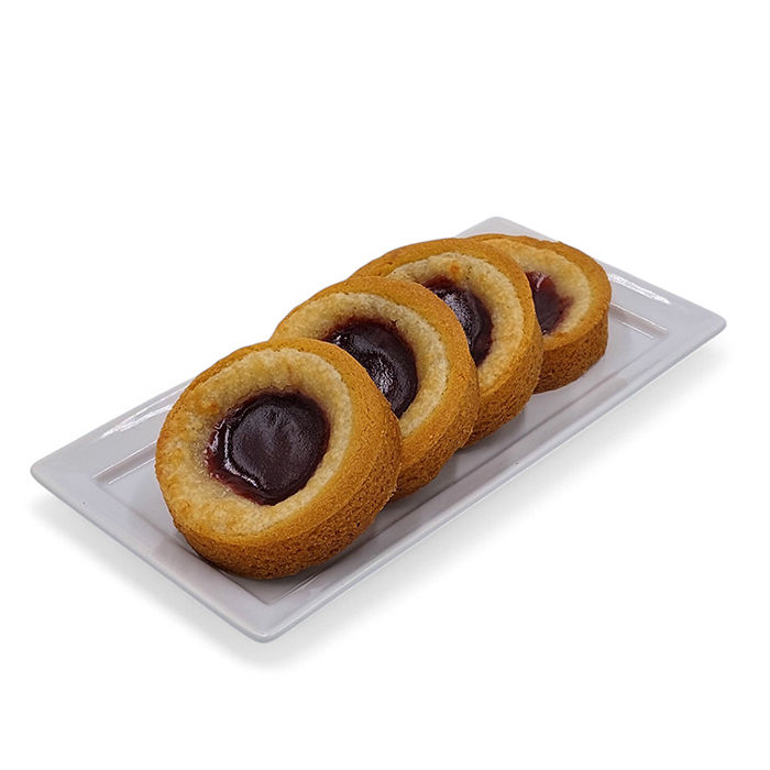 tarwebloem (33.10 %), suiker (28.56 %), roomboter (melk) (19.86 %), amandelen (7.68 %), ei (3.31 %), water (2.92 %), frambozen (1.15 %), glucosestroop (0.77 %), stabilisator(E422 (0.77 %)), rijsmiddel(E500 (0.70 %)), invertsuikerstroop (0.60 %), glucosestroop (gedroogd) (0.38 %), rode bessen (0.19 %), enzymen, ei-eiwit (gedroogd), aroma(citroen), conserveermiddel(E202), geleermiddel(E440), natuurlijk aroma(framboos), zuurteregelaar(E330)